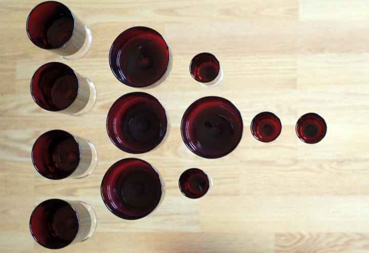Tenemos un completísimo conjunto para cuatro personas formado por 4 copas grandes, 4 copitas pequeñas y 4 copas de postre o de cocktail.