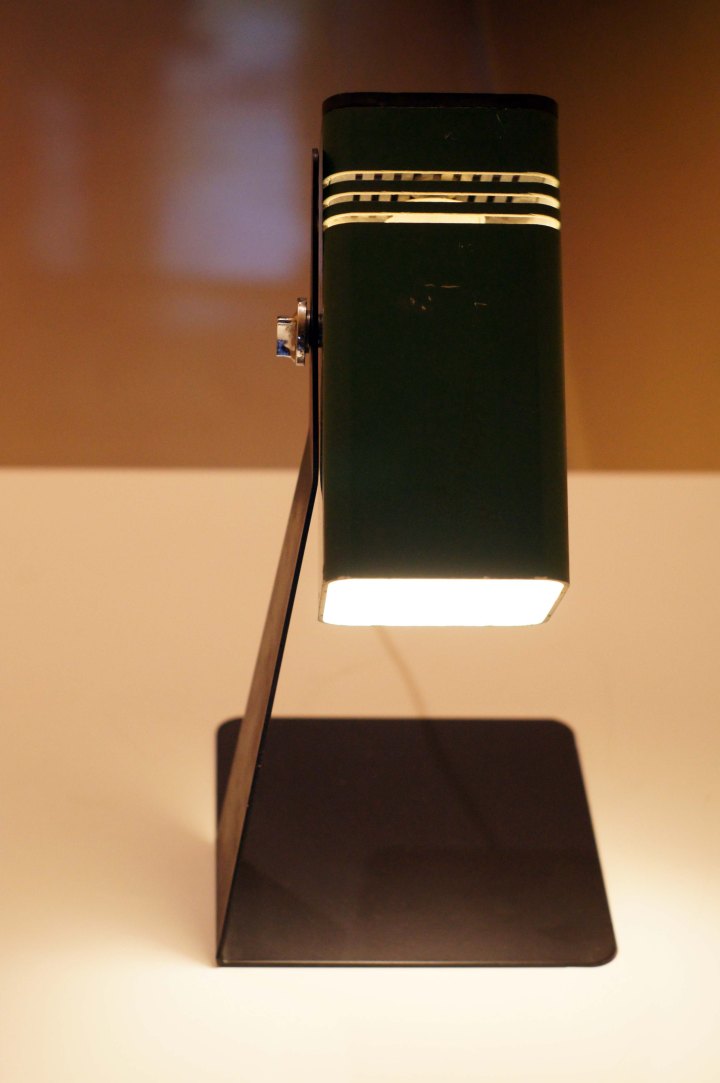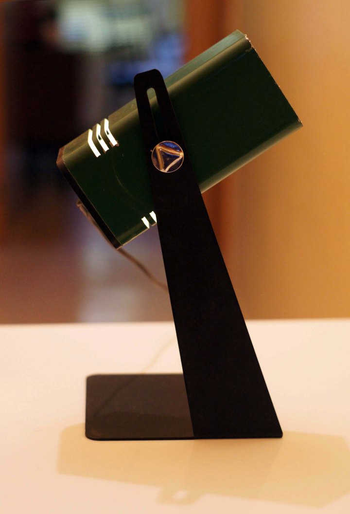 Lámpara Fase de metal negro y verde. Ajustable en varias direcciones.