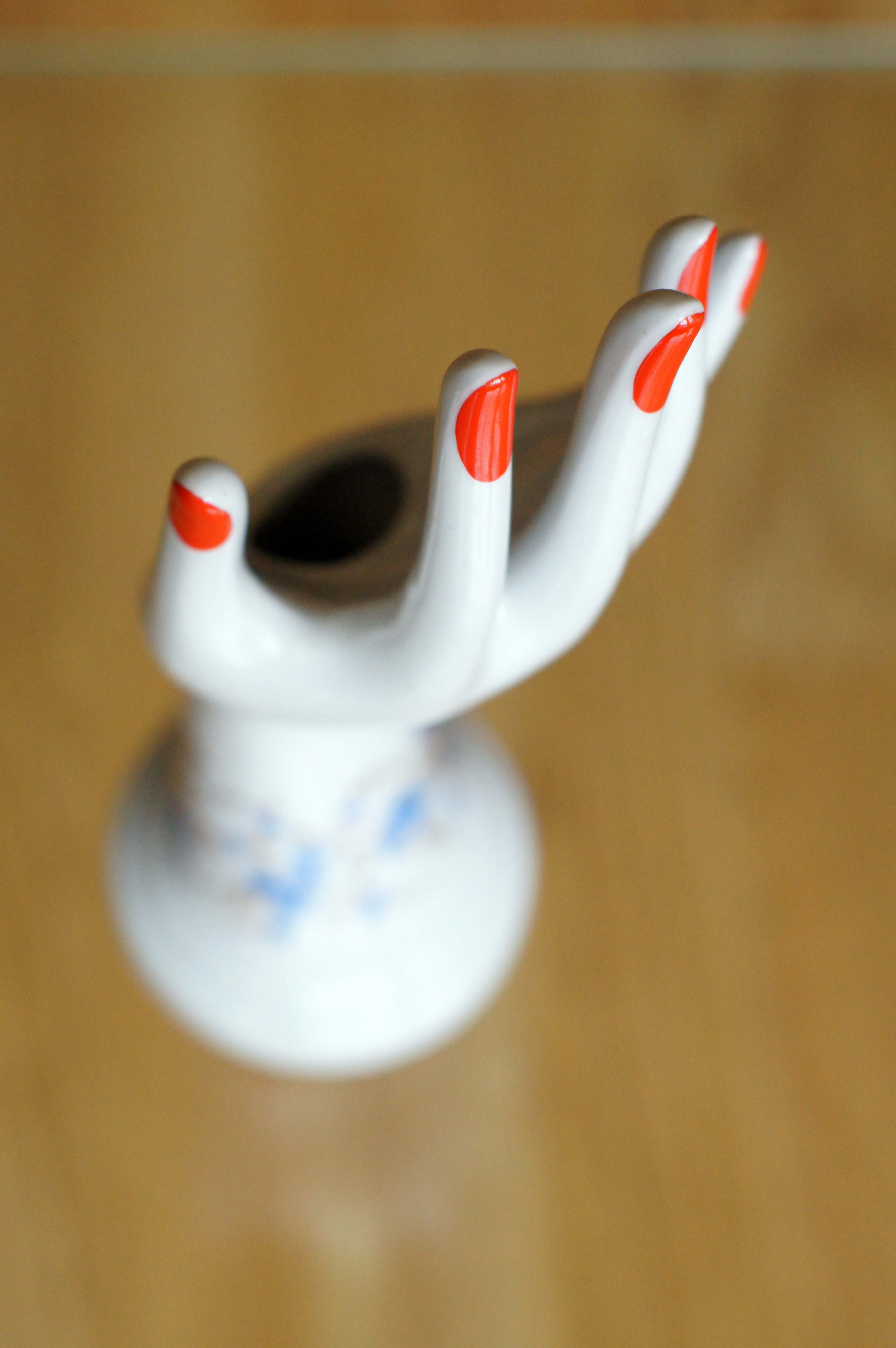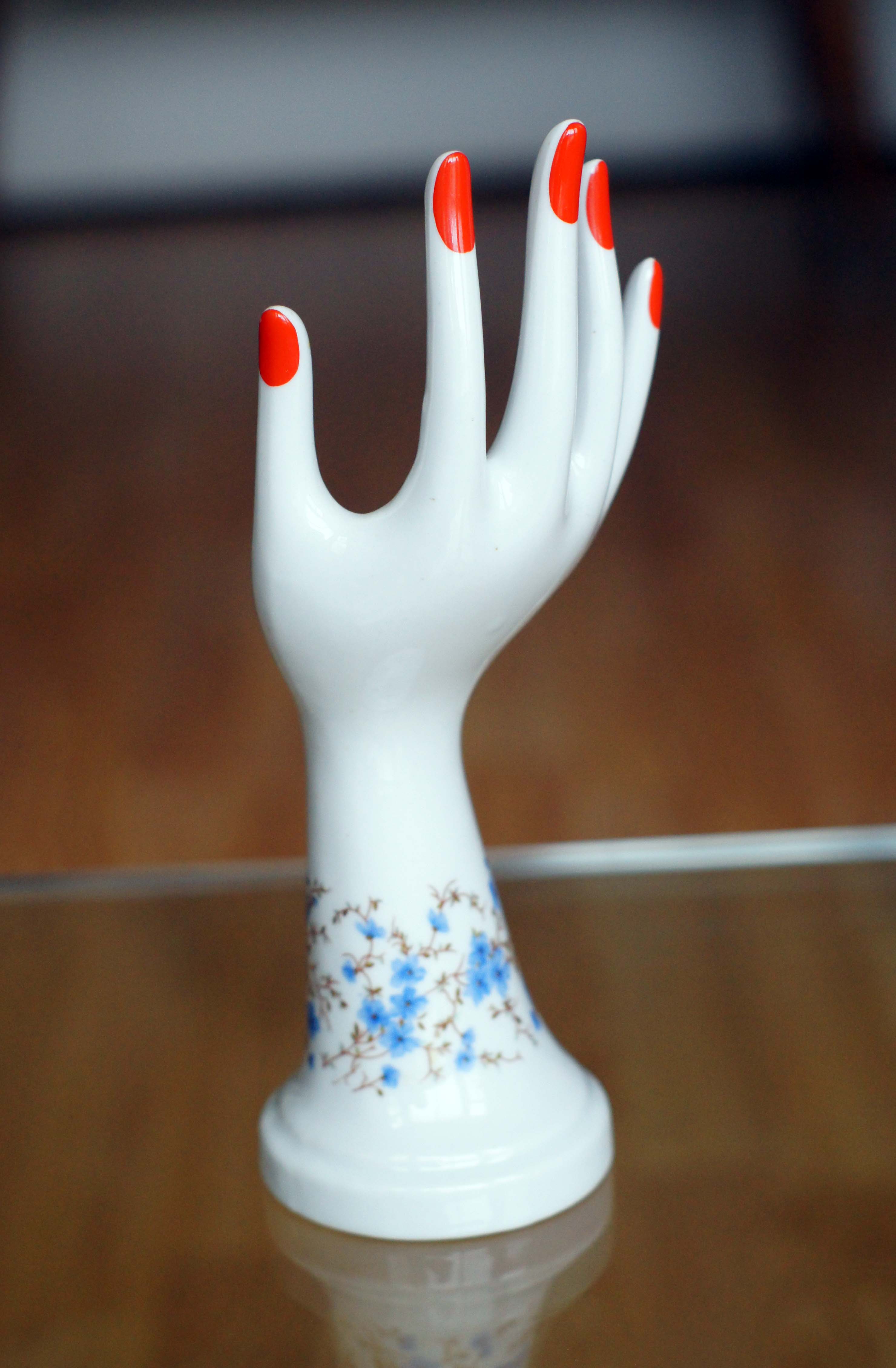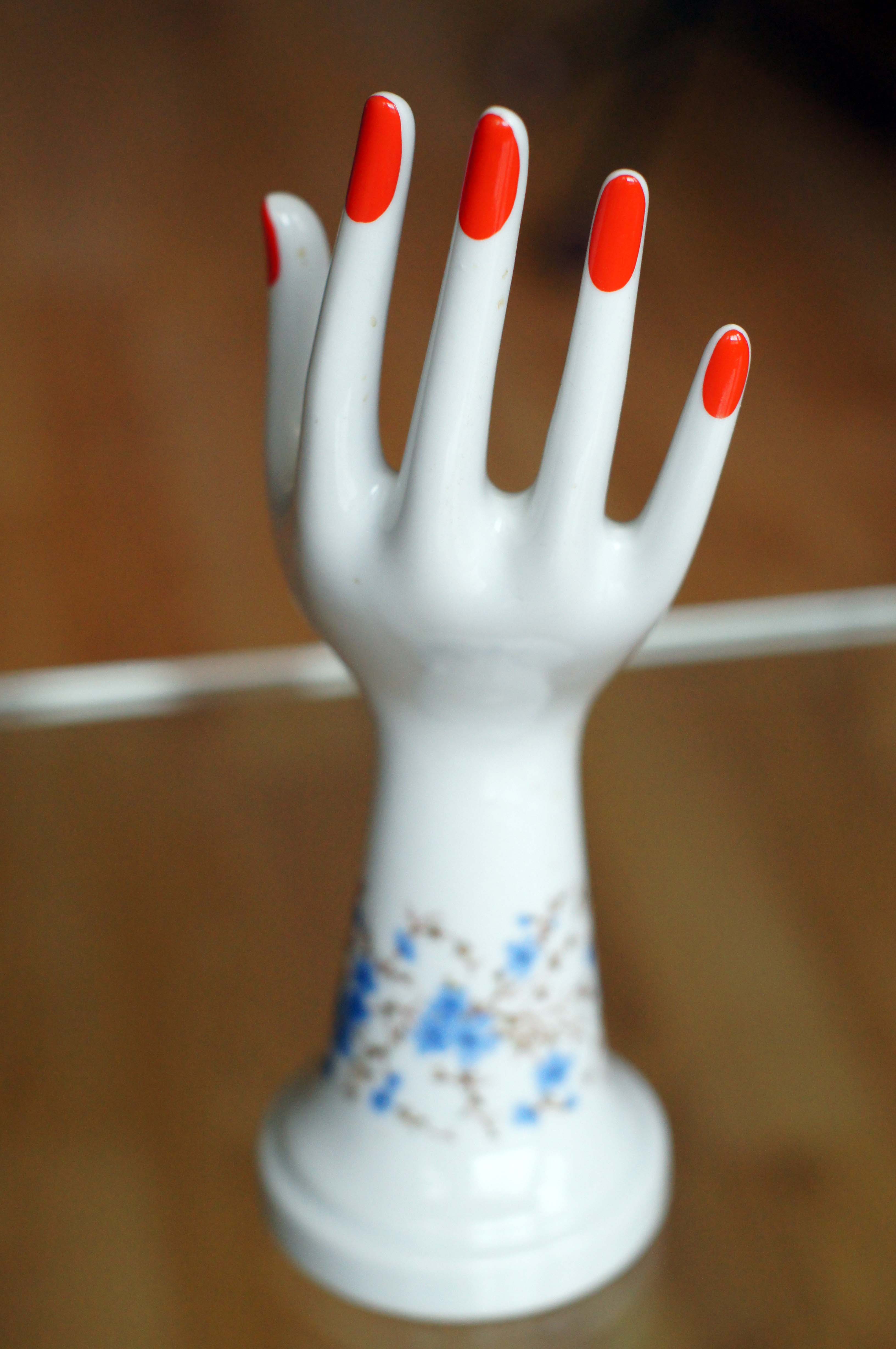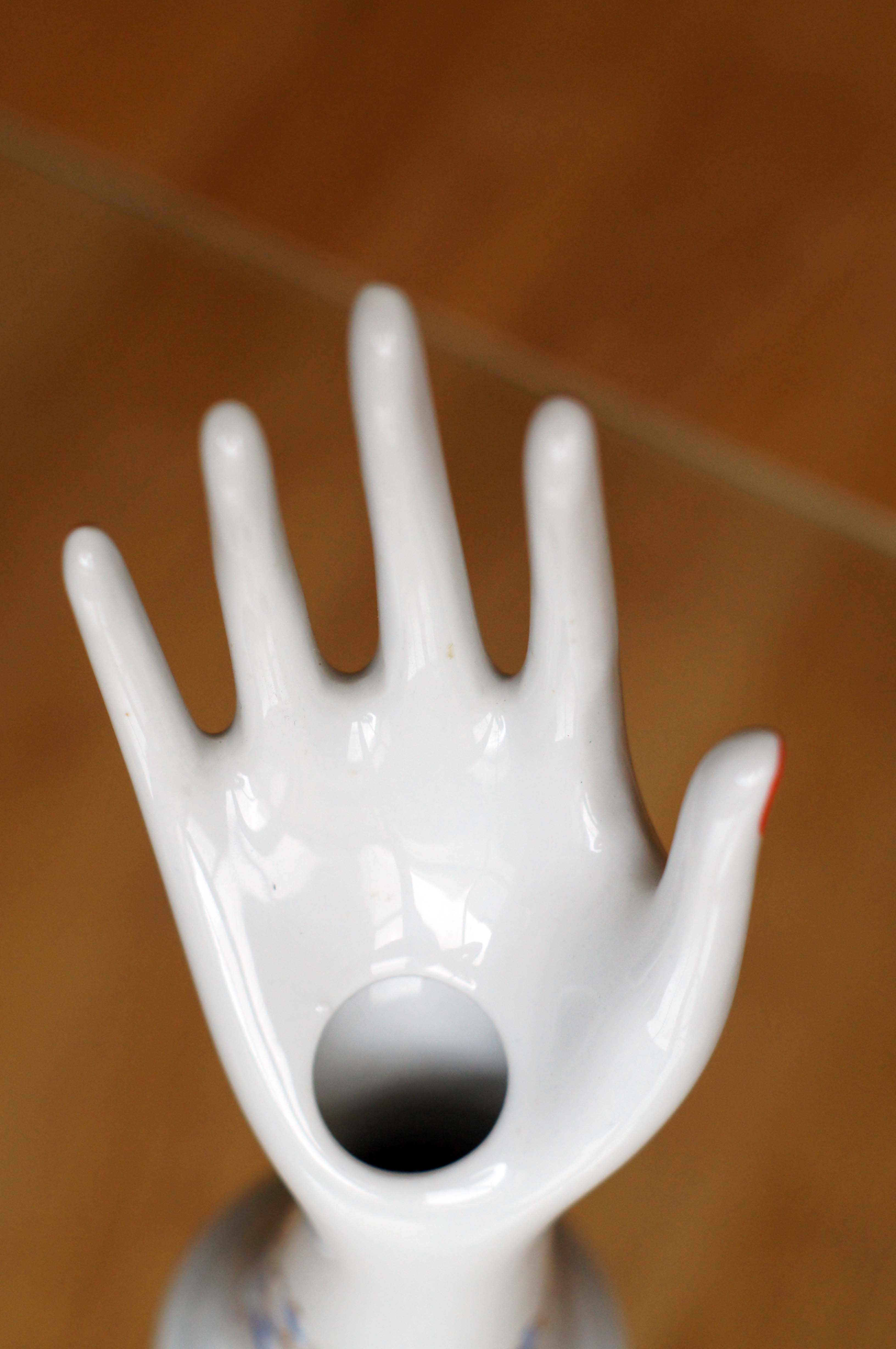 Delicada y elegante mano de porcelana pintada a mano.