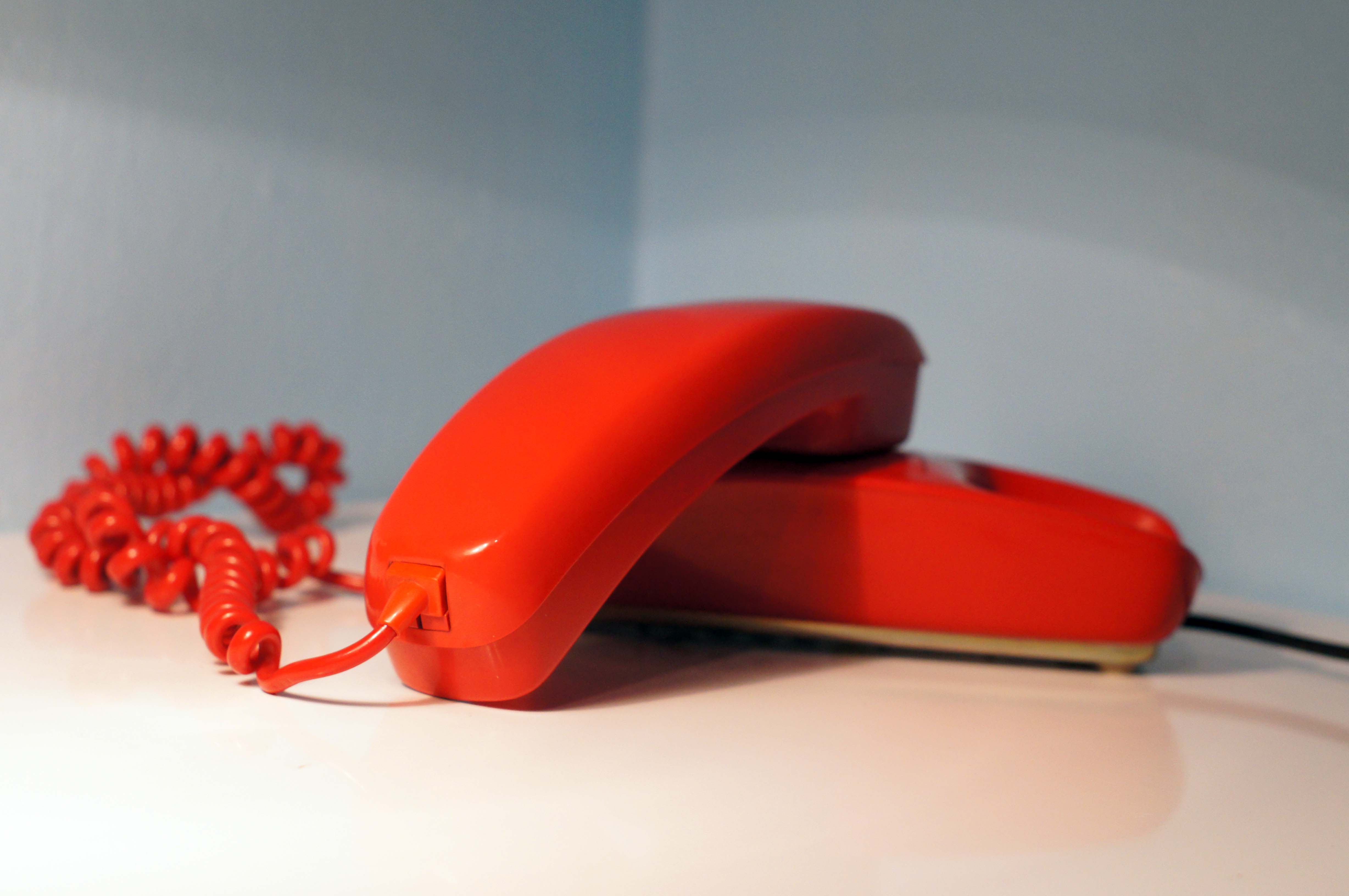 Es un teléfono auxiliar de color rojo intenso adaptado a las rosetas actuales.