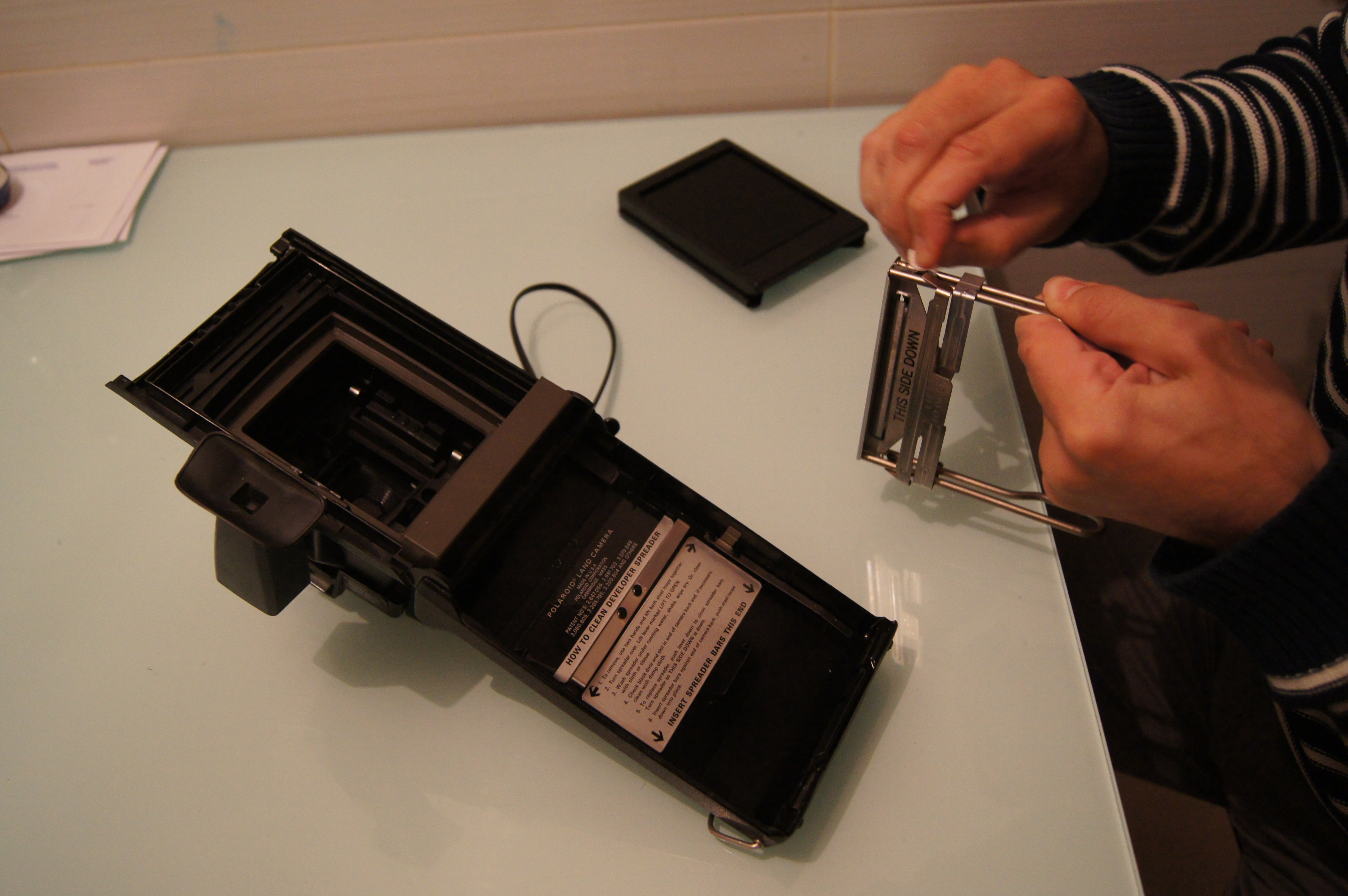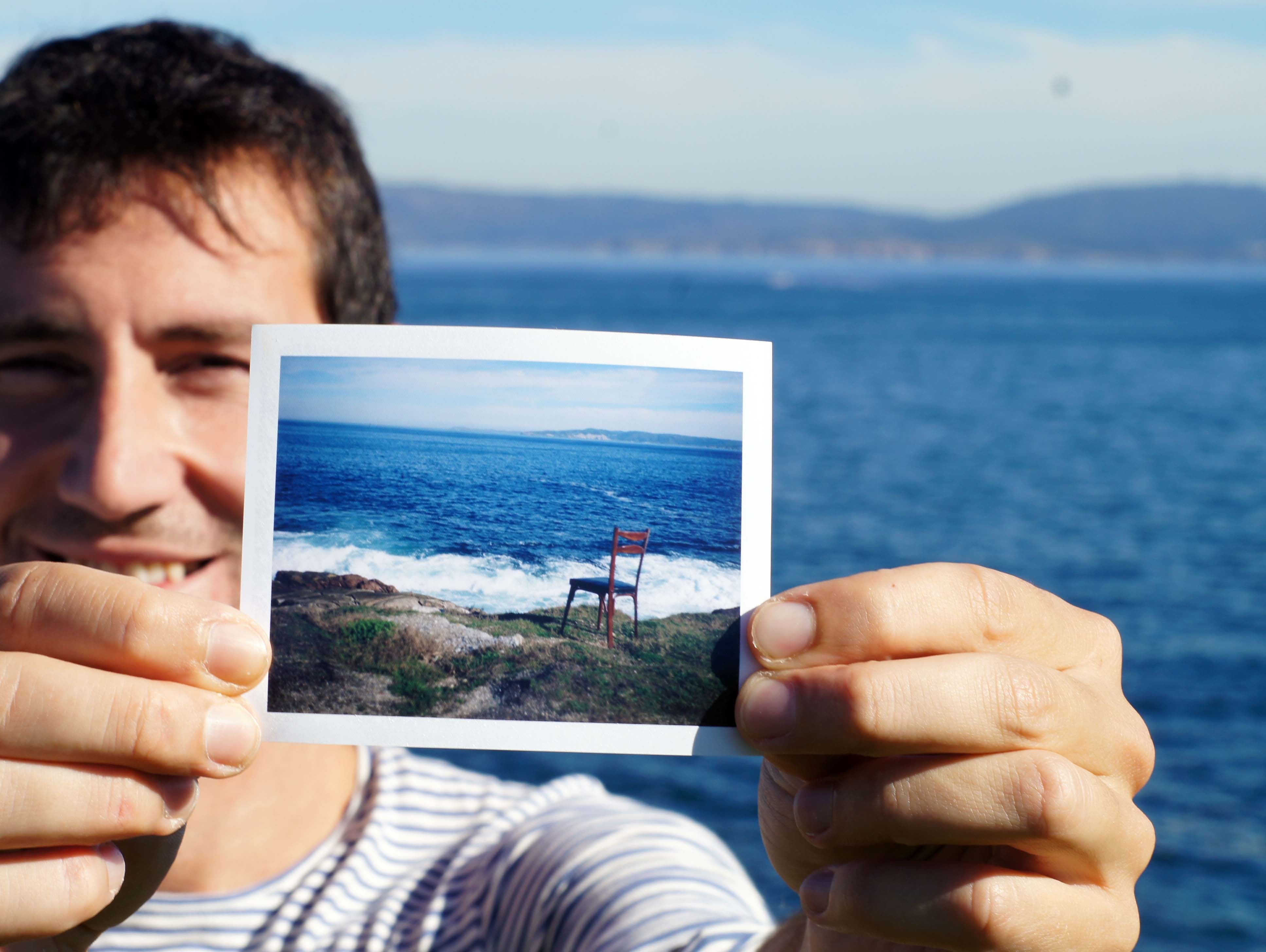 La primera que utilizamos fue la cámara Colorpack II. Estábamos nerviosísimos desde el primer momento, por si algún fallo causaba la pérdida de la película. Hicimos el primer disparo y nos esperábamos que se escuchase algún ruidito y … silencio fue lo que oímos. Durante minuto y medio que esperamos para que se revelara la foto pensábamos que no iba a salir nada. Despegamos el negativo y…. ¡Voilà! Dimos saltos de alegría al ver que la foto había salido ¡¡¡PERFECTA!!! Un sólo defecto: es muy adictivo.