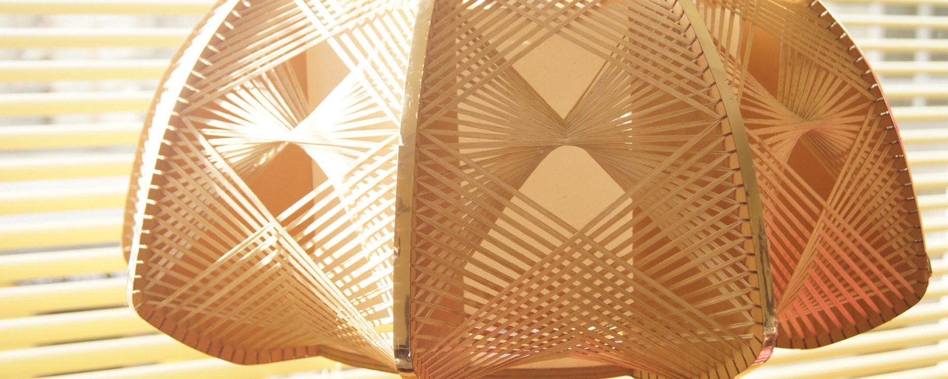Disponemos de esta lámpara de techo fabricada en los años 60 de madera y rafia.