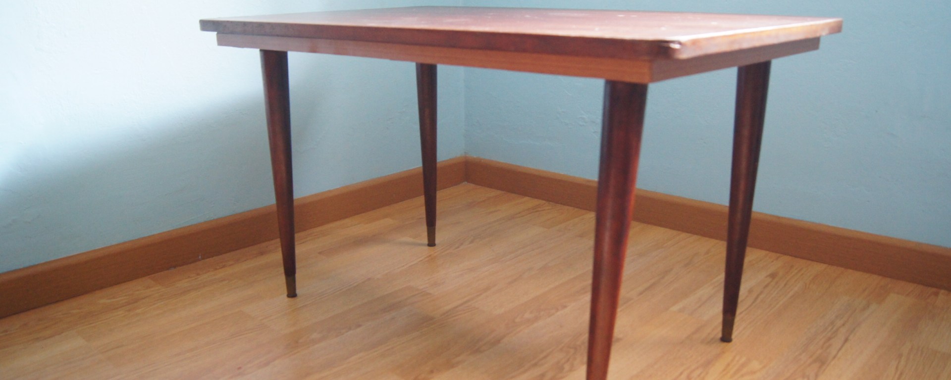Mesa auxiliar con patas estilizadas y remates de latón, característica de los años ’50.