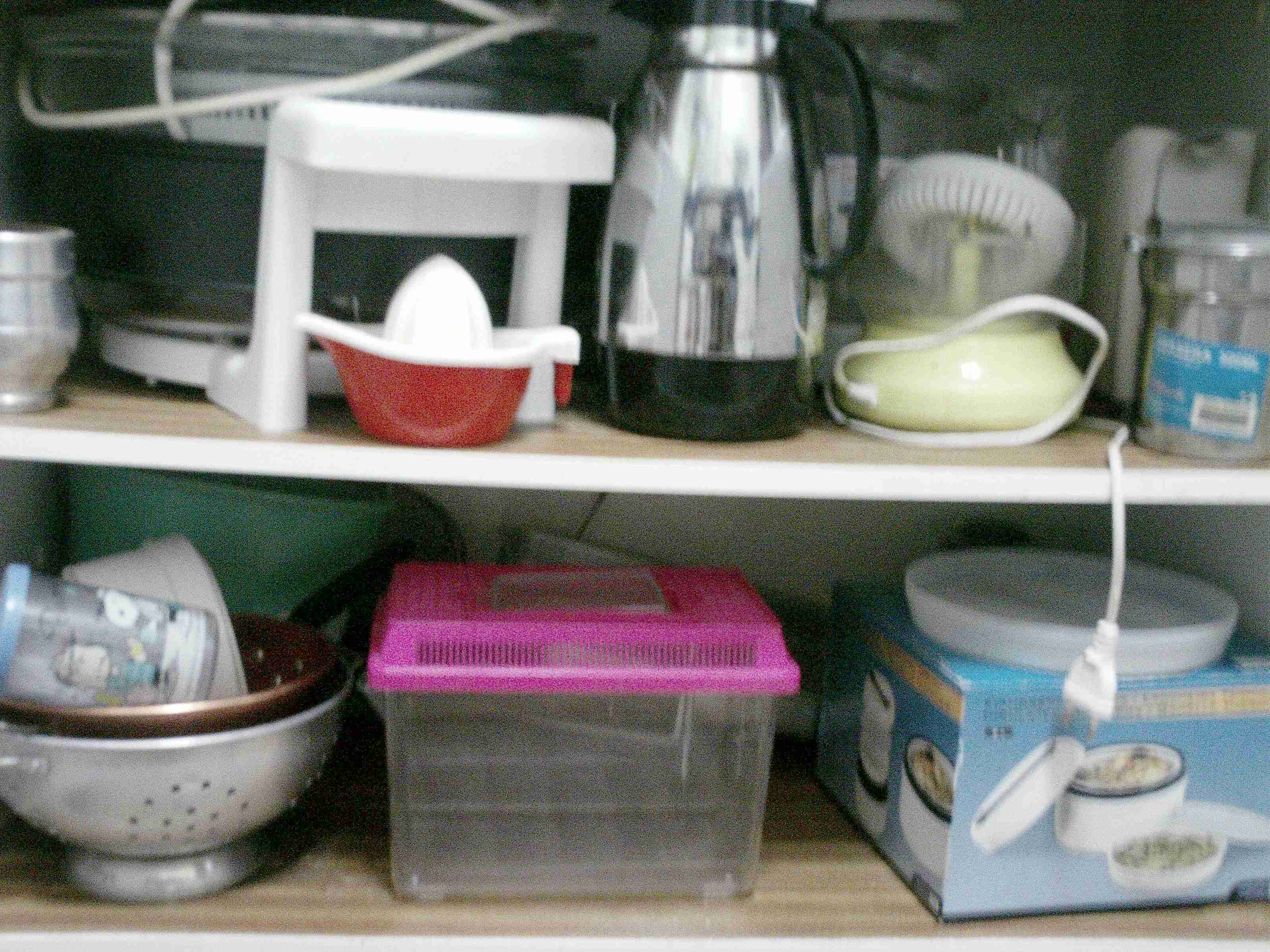 Después de un par de horas viendo el programa, Laura decidió preparar la cena. No me dejó ayudarla y le pregunté si tenía alguna alacena con trastos para echarles un ojo mientras tanto. Me dijo que detrás de mi había cachivaches de cocina que llevaban años sin usarse.