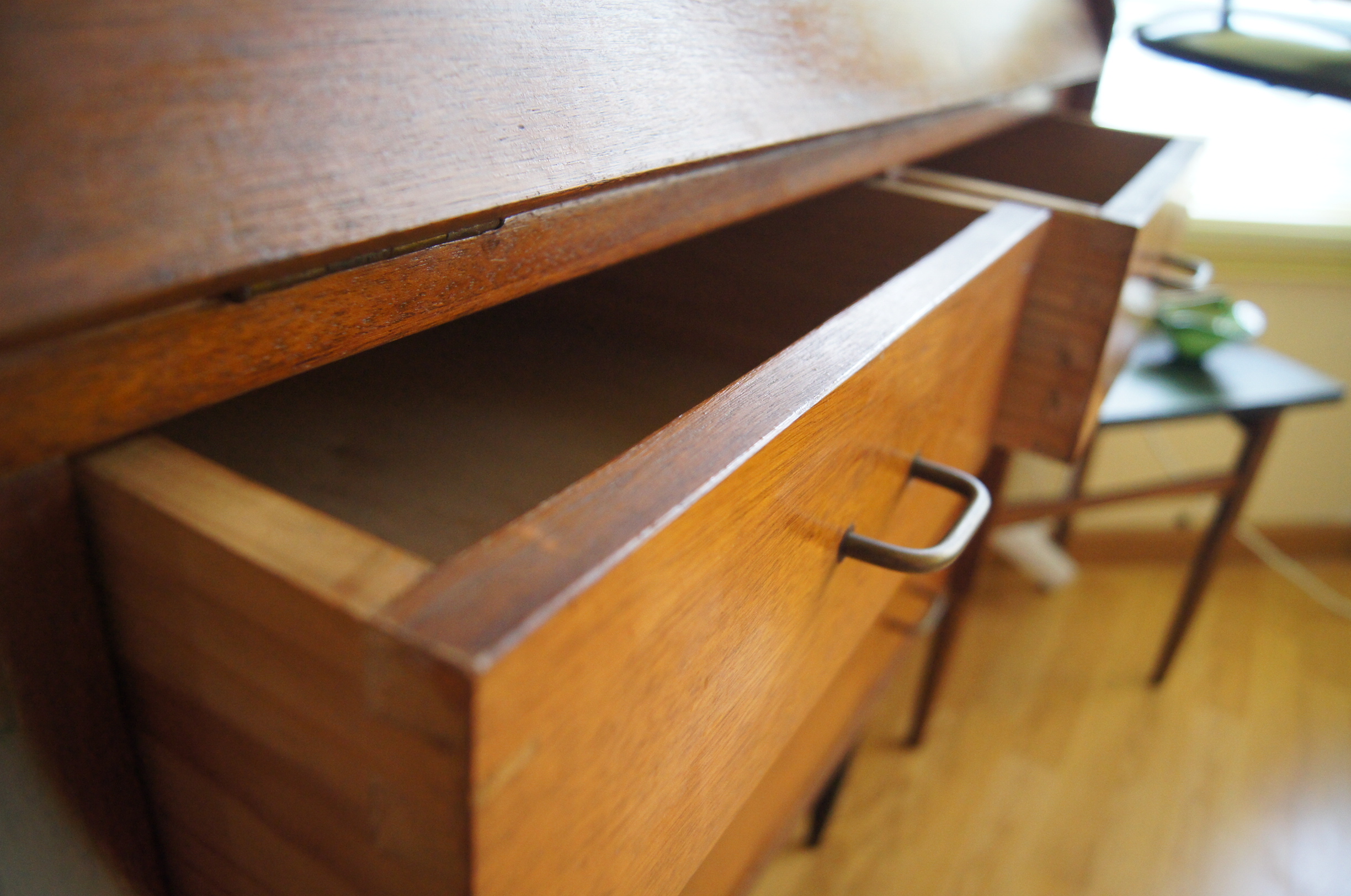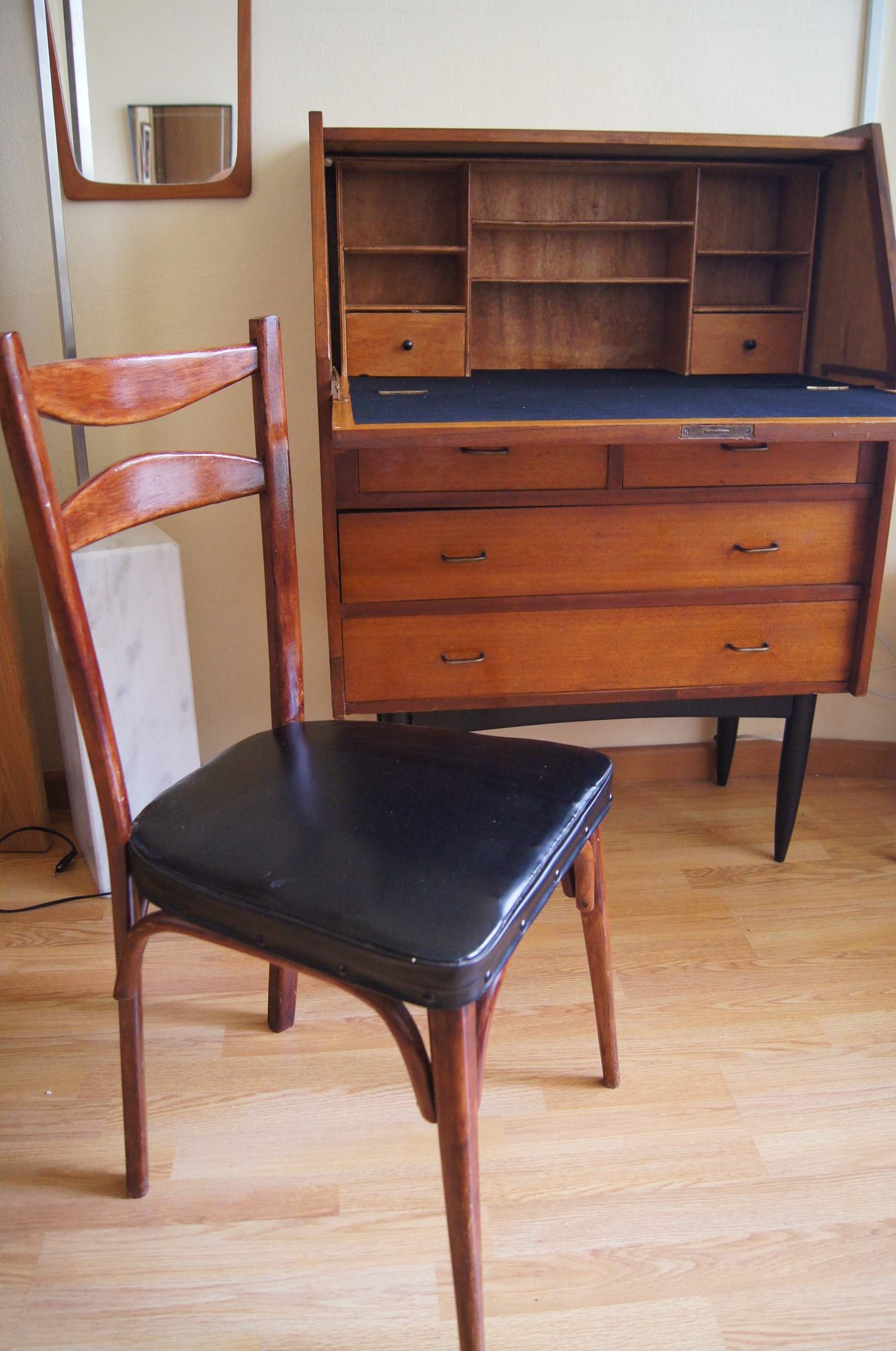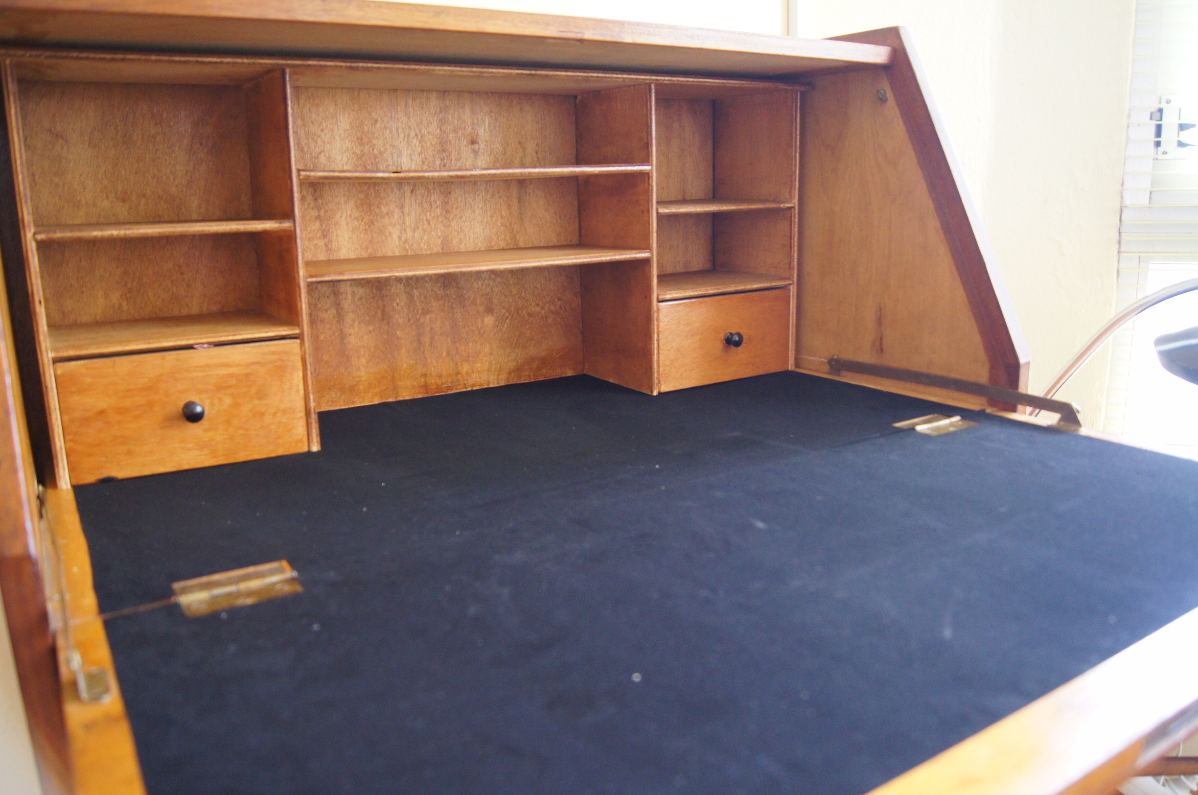 Escritorio Bureau de madera de los años 50, 60 con patas bambi.