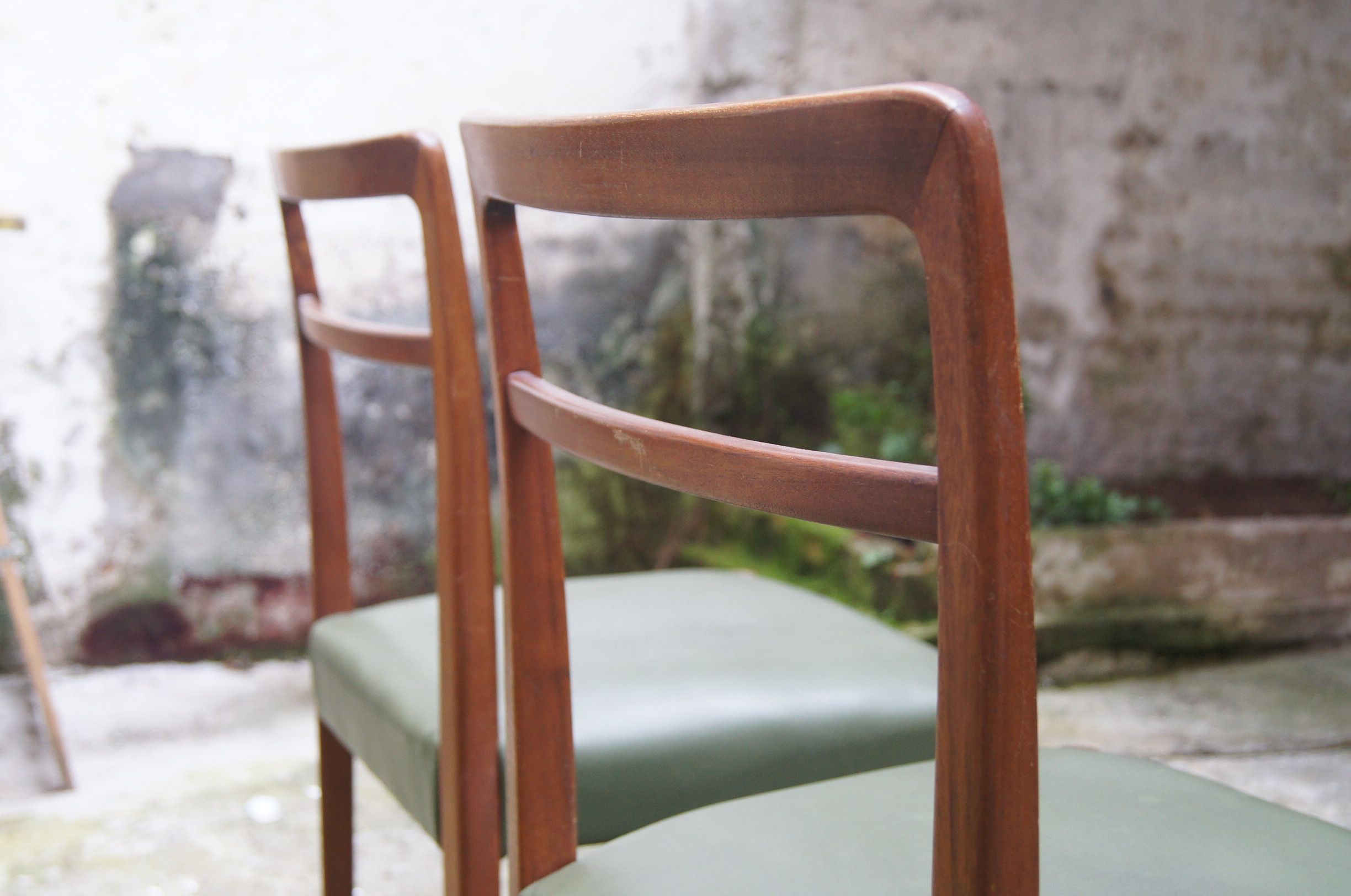 Conjunto de seis sillas de línea escandinava fabricadas en madera noble. Años 60.