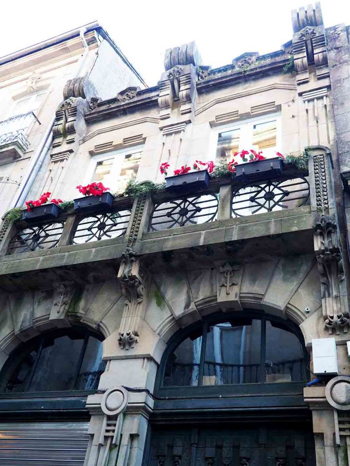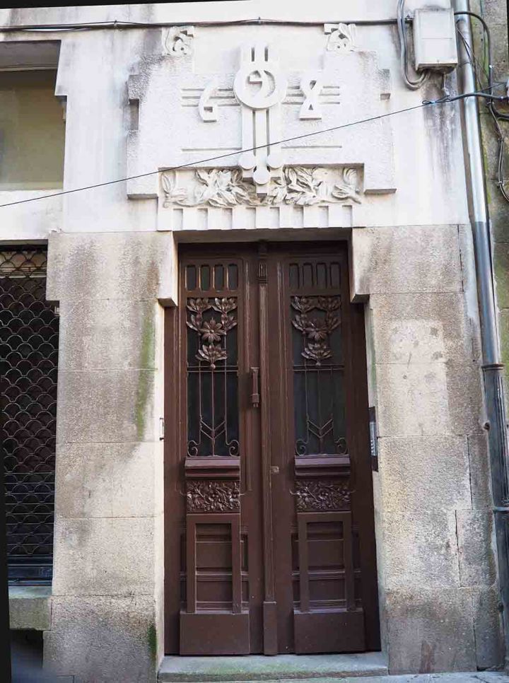 Muy próximo a la calle anterior avanzamos según nuestro mapa del modernismo hacia Rúa das Orfas nº 1. En ella, nos encontramos con otra obra del modernismo compostelano fechada en 1914, y reformada por González Villar en 1930.