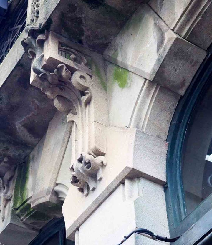 En su transcurso, descubrimos elementos ornamentales modernistas que adornan barandillas y ménsulas de otros edificios. Ejemplos de ello son los mostrados a continuación.