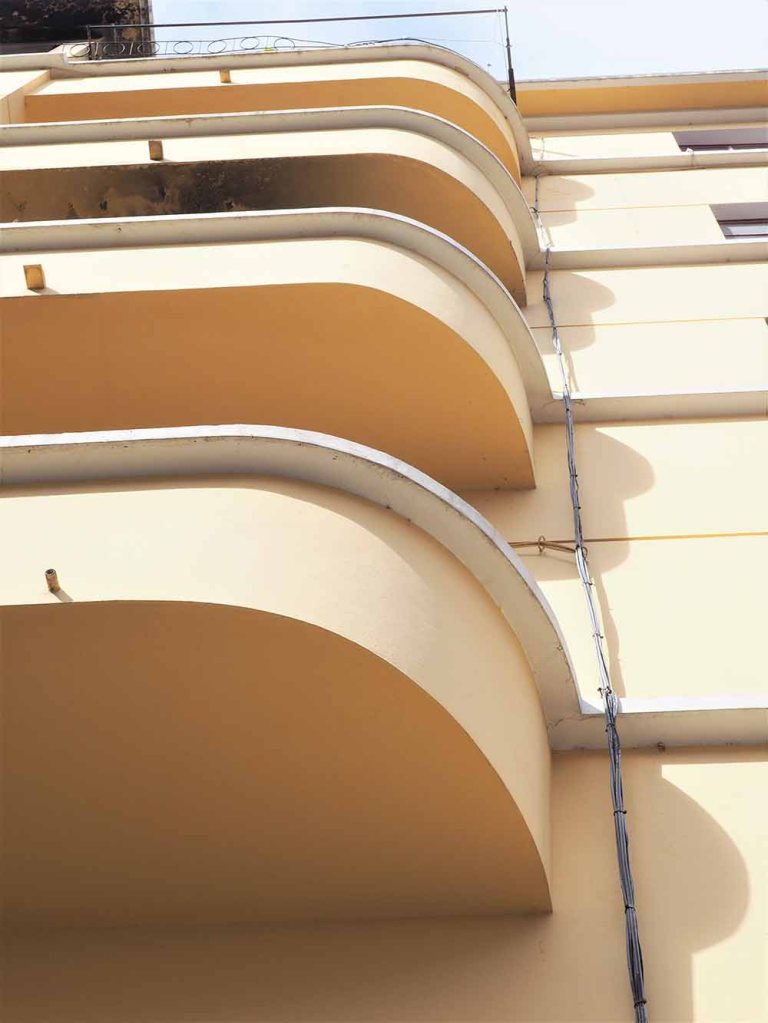 En este conjunto armonioso, las fachadas racionalistas de líneas simples resaltan por sus diferentes colores en un diálogo de equilibrio.