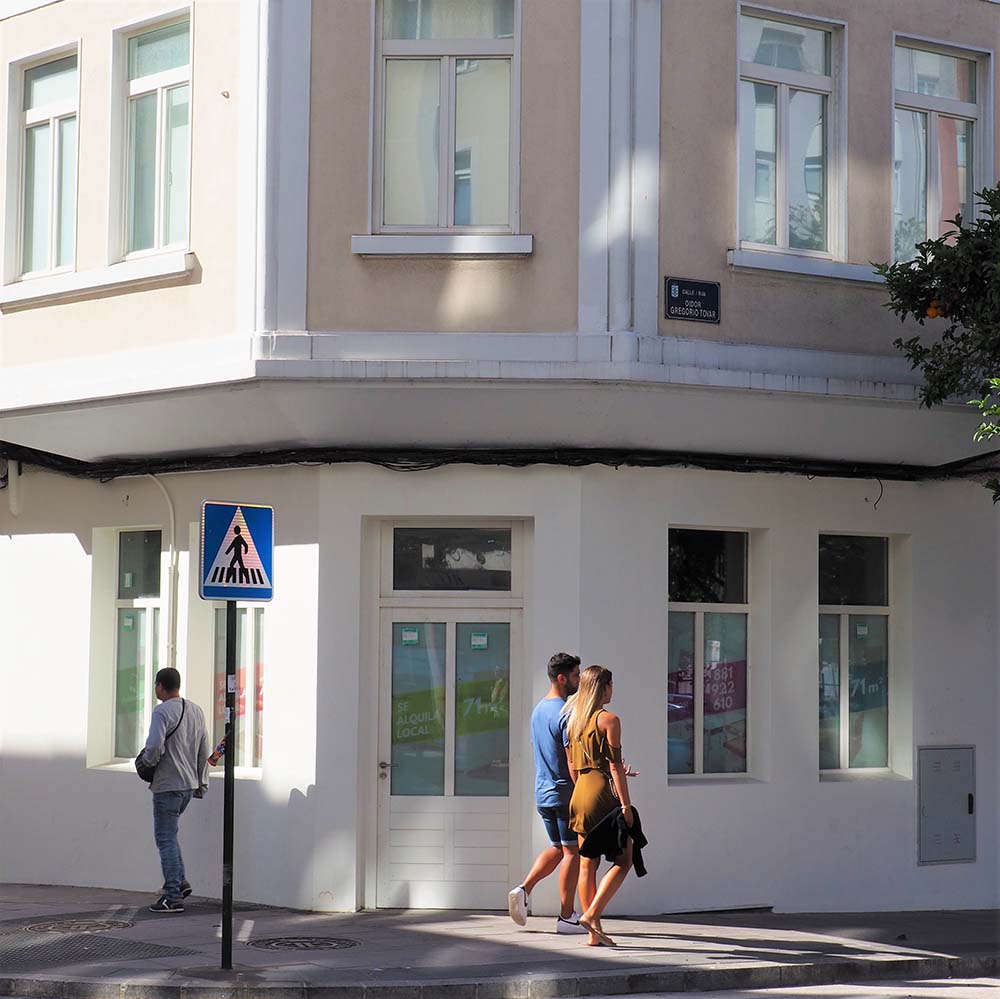 La calle Oidor Gregorio Tovar se configura como una de las más atractivas a nivel visual y urbanístico con aceras de sección generosa y arboladas. Además, mantiene todavía la armonía de sus edificios en las proporciones, en la medida de lo posible. En las siguientes fotografías podemos hacernos una idea de cómo se encuentra configurada a espera de la ejecución de un proyecto de ampliación de una de las aceras.