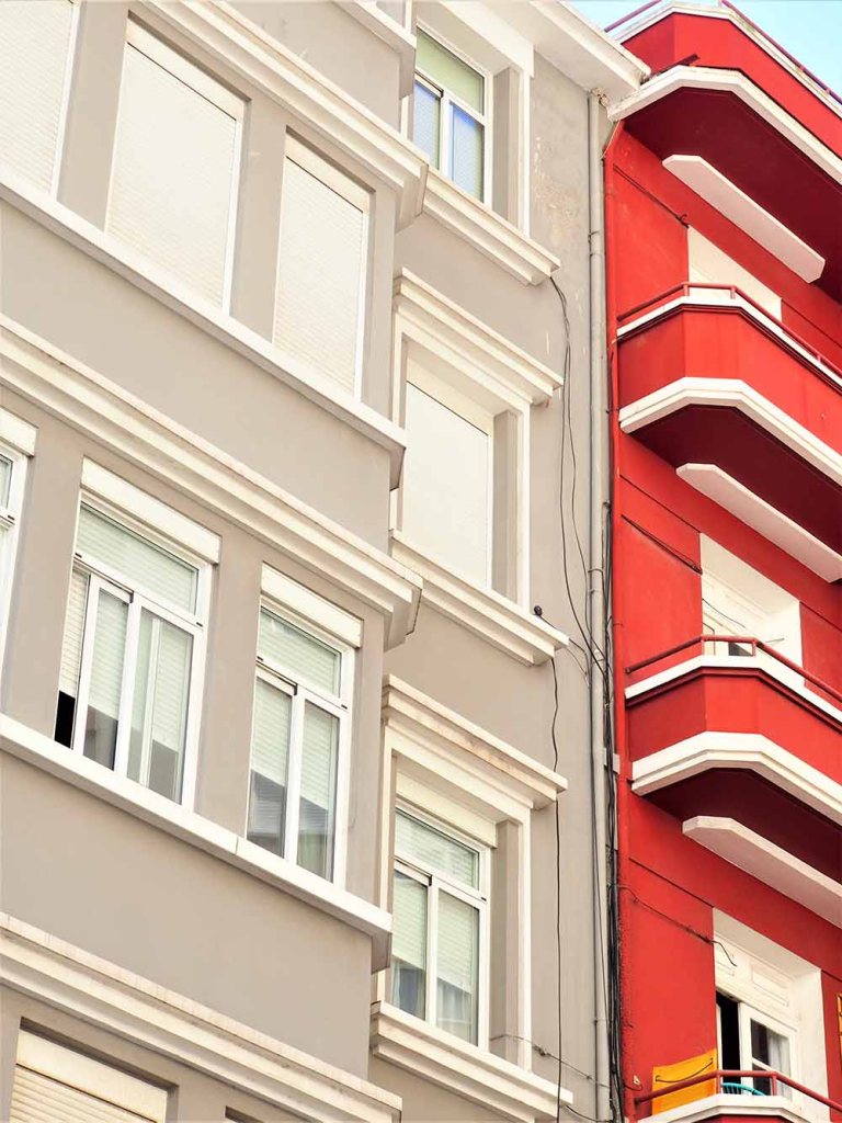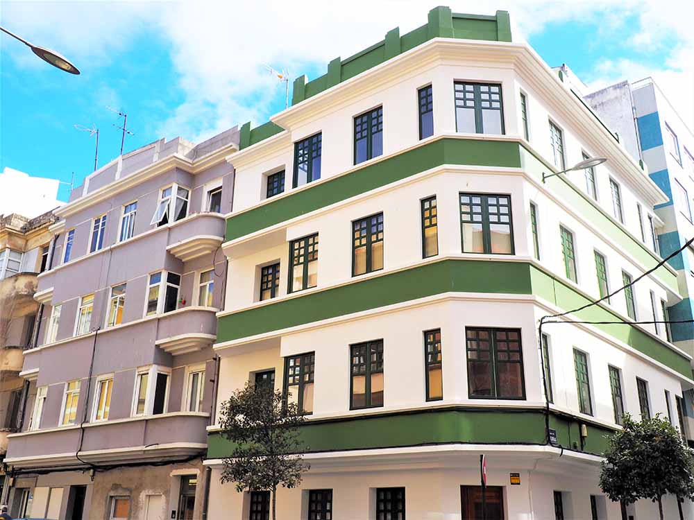 Otros, como el de la imagen inferior, ya han sido rehabilitados y entregados con éxito potenciando sus detalles de coronación art decó y su arquitectura intrínseca. Las líneas simples de ligero movimiento dan forma a unas fachadas puramente racionalistas.
