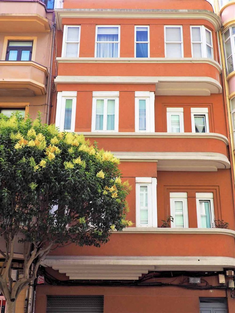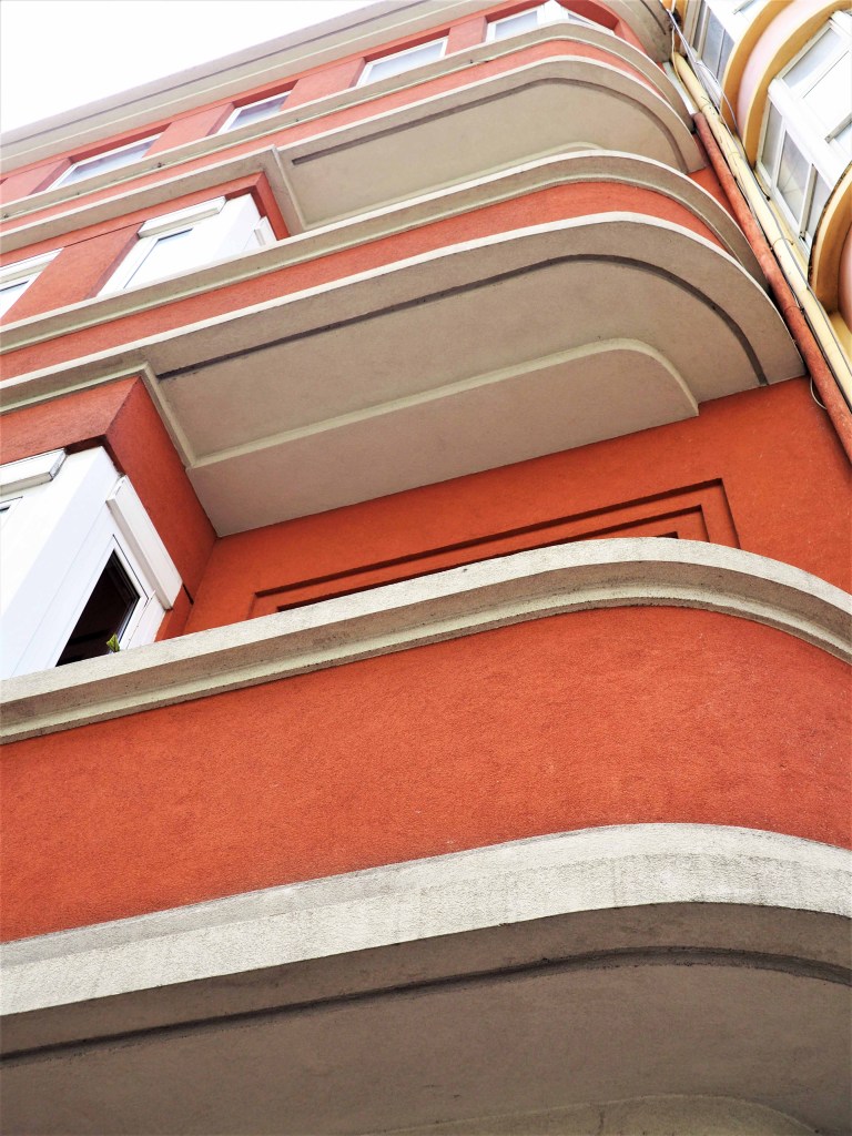 Destaca el siguiente edificio que está situado en esa misma calle con miradores curvos y voladizos escalonados que recuerdan al art decó.