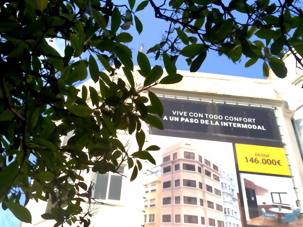 En la misma calle, se empiezan a promocionar la rehabilitación de algunos de estos edificios potenciando la cercanía a la ya en construcción estación intermodal y algunas cualidades interiores como los techos altos y la incorporación del ascensor con la ruptura de barreras arquitectónicas.