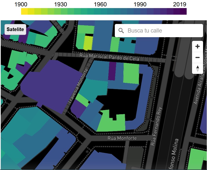 Por ejemplo, el siguiente edificio situado en la Calle Mariscal Pardo de Cela es de los primeros que se han construido en el barrio.