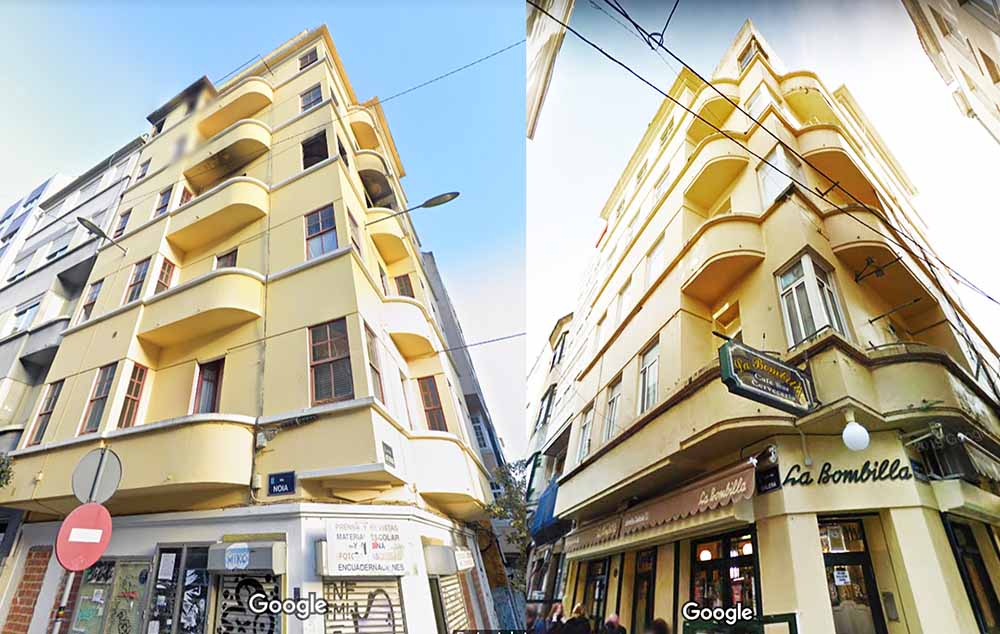 En esta misma calle es conocido el siguiente edificio por haber sufrido dos misteriosos incendios en el plazo de una semana. Lo que pocos saben es que se trata de una joya arquitectónica racionalista decó de Antonio Tenreiro. Detallamos esta construcción: