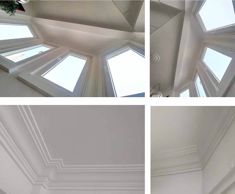 En esta imagen apreciamos el interior de la estancia del mirador semihexagonal que desvela una alta luminosidad, a modo de galería moderna.
