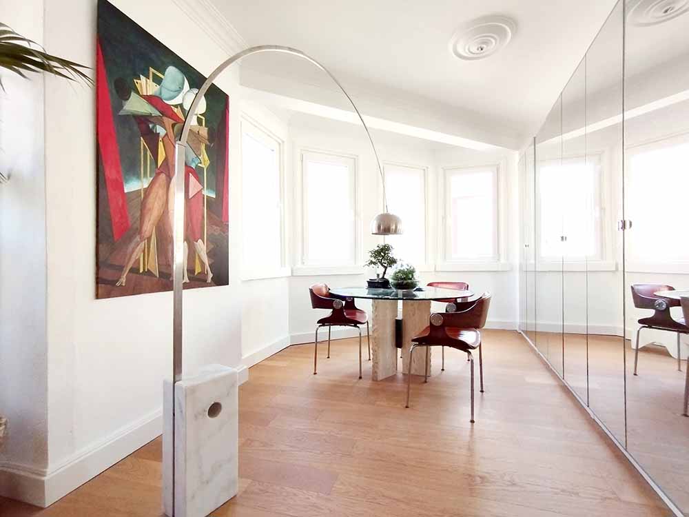 Efectivamente, su arquitecto fue el mismo, siendo en este caso únicamente Antonio Tenreiro quién firmaría el proyecto en 1935. Este edificio posee además generosas distancias entre forjados con altura de techo de 3,2 metros, un lujo que puede ser alcanzable en esta zona.