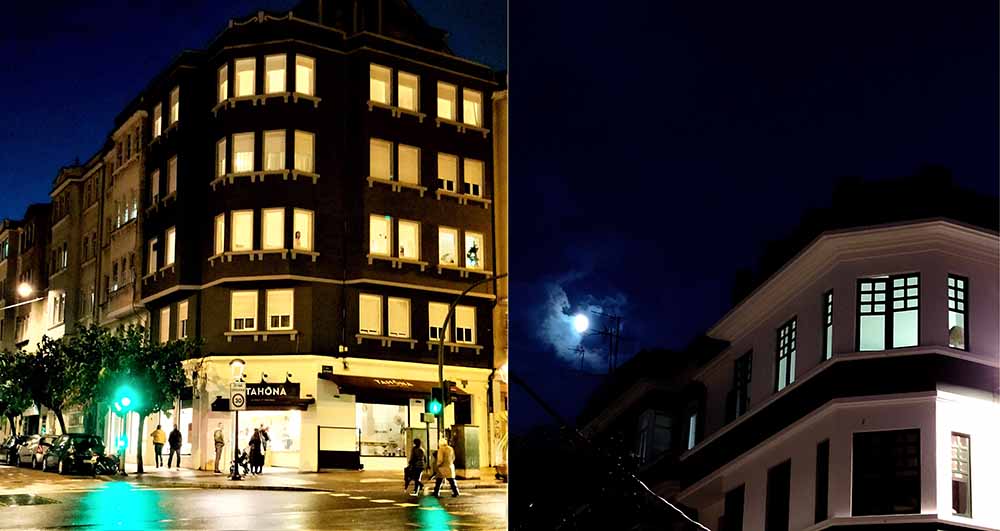 De noche, los interiores de las viviendas cobran protagonismo al destacar más su iluminación, lo que nos permite vislumbrar cómo es algunos de estos espacios sorprendiendo en aquellos en donde se ha tratado con dignidad y respetando su pasado.