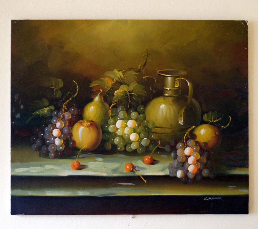 Bodegón pintado por L. Skinner. Medidas: 65 x 50 cm Estado: Bueno Precio: 138 euros +info o compra clicando aquí o facebook Continúa leyendo Bodegón. Pintura al óleo. Firmado por L. Skinner. Época desconocida.