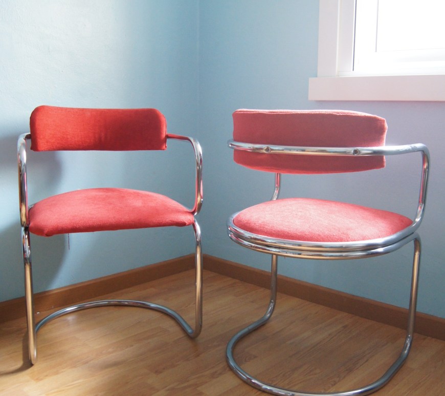 Tenemos dos butacas tubulares de acero de finales de la década de los 60. Están en buen estado y con tapizado nuevo. Ëpoca: Años 60 Dimensiones: 51 cm x 74 cm Estado: Bueno Precio: vendidas +info o compra clicando aquí Continúa leyendo Butacas tubulares. Años 60