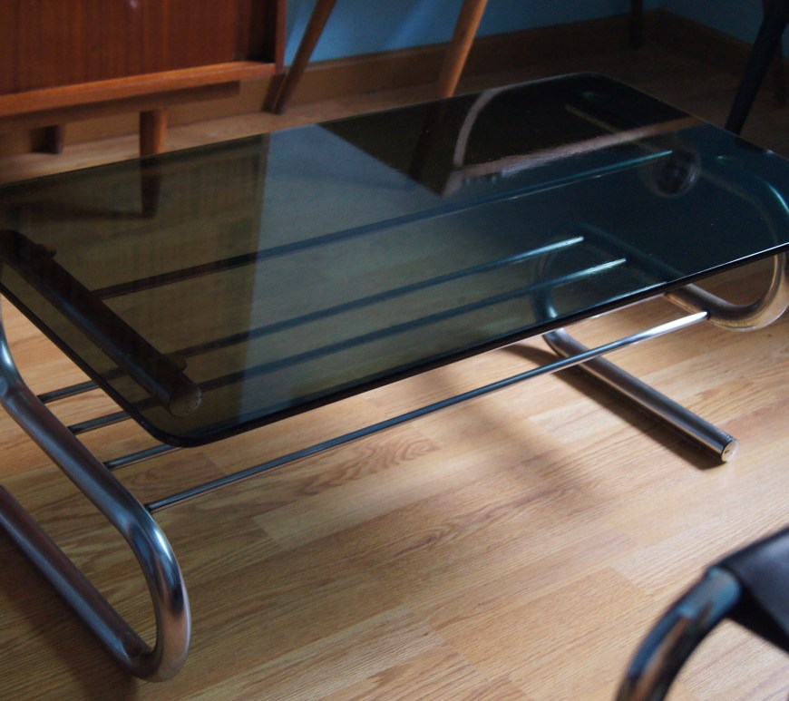 Es de los años 70. El cromado presenta leves signos del paso del tiempo y el cristal está en perfecto estado.  La mesa está formada por una estructura tubular cromada que sujeta el cristal fumé mediante unas discretas ventosas. Mide 89 cm de largo, una medida ideal para una mesa auxiliar de sala de estar.  Estéticamente es muy ligera y, a través del cristal, divisamos … Continúa leyendo Mesa de cristal. Años 70.
