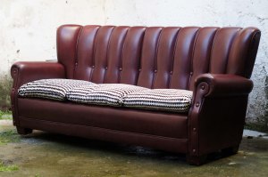 Sofá orejero capitoné de skay color chocolate. Años 60. Tipo smoking club inglés. +INFO Y PRECIOvendido